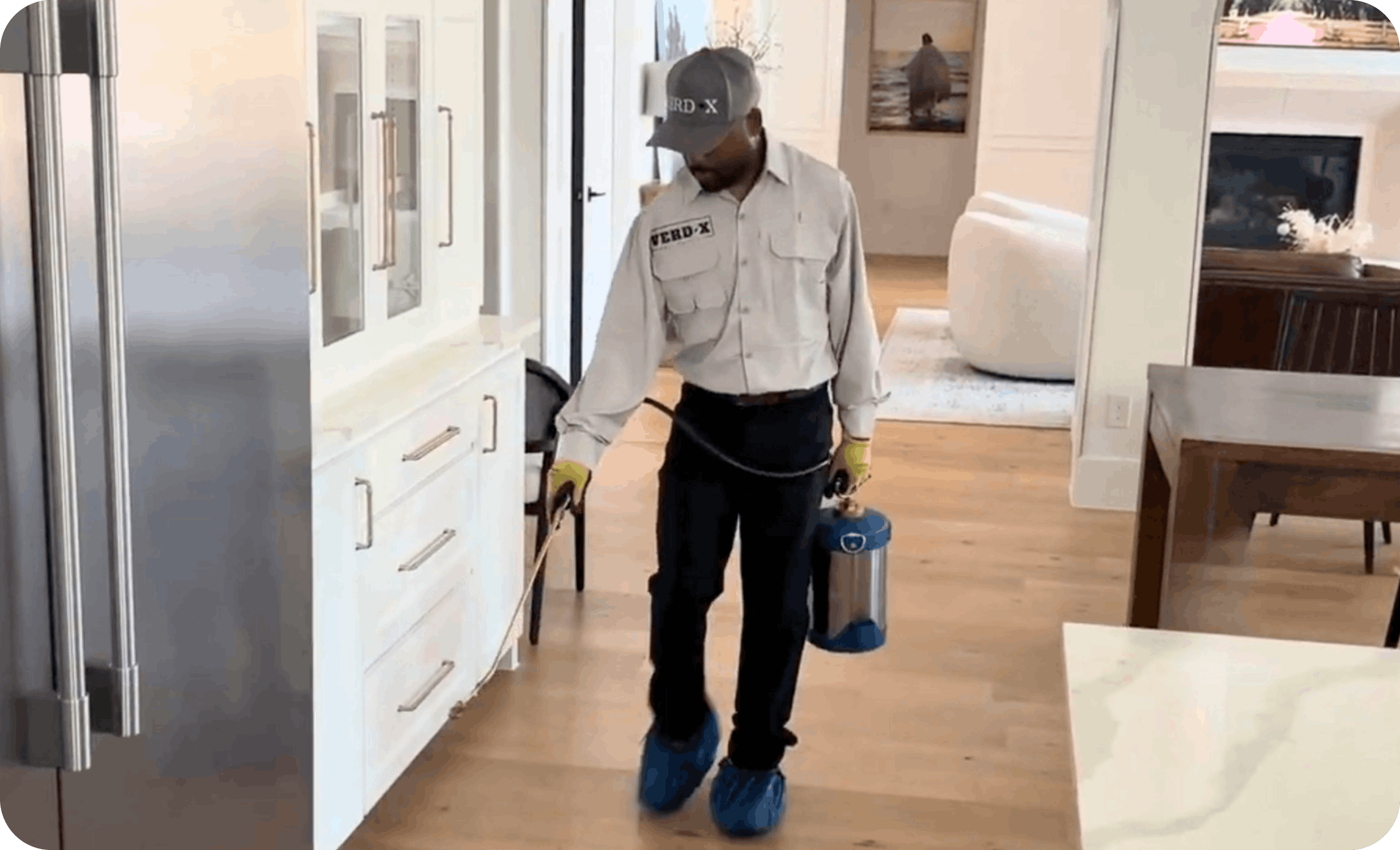 The technician will treat the exterior by performing a perimeter power spray, dusting cracks and crevices, sweeping the eaves, entryway, and patio. Finally, granules will be applied up to 50 feet around the perimeter of your yard. Interior service is always included at no cost. Our scheduling team can add interior service with a call, text or email. When the technician is in your home, he will wear protective shoe coverings.